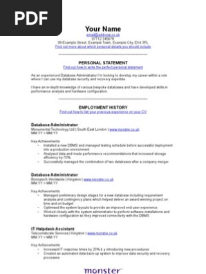 Download The Dba Resume Sample Three In Pdf : View This Sample Resume For A Database Administrator, Or Download The Database Administrator Resume Template In Word.