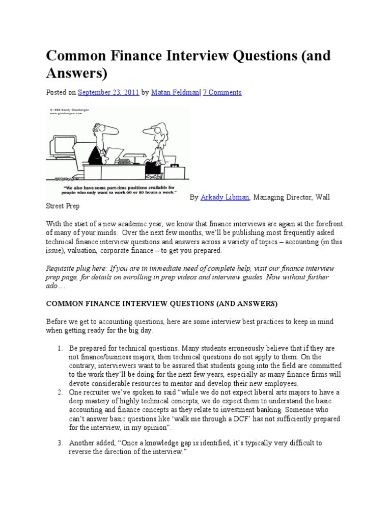 Common Internship Interview Questions And Answers Fastweb. Finance interview questions with excellent interview answer help. However there are certain core behaviors. Whether you're a candidate or interviewer, these interview questions will help prepare you for your next finance director interview ahead of time. Look for candidates that subscribe to various finance publications. What is the most challenging part of budgeting for you? * there is more to interviewing than tricky technical questions, so these are intended merely as a guide. Whether you are preparing to interview a candidate or applying for a job, review our list of top director of finance interview questions and answers. One of the key duties that your director of finance will perform is ensuring that your organization is performing tasks while following applicable laws and. How do you keep up to date with changes in financial sector trends? There are 2 different sets of questions for this title. Take a couple of seconds to plan your answer and repeat the question back to the interviewer out loud (you buy some time by repeating part of the question back at the start of your answer). Director of finance interview questions. Use a structured approach to answering each. Be well prepared for your finance job interview and come across as the right candidate for interview questions will vary depending on the employer, the level of the job and your work experience. Recruiters say the best candidates are those who can demonstrate a thorough understanding of the.