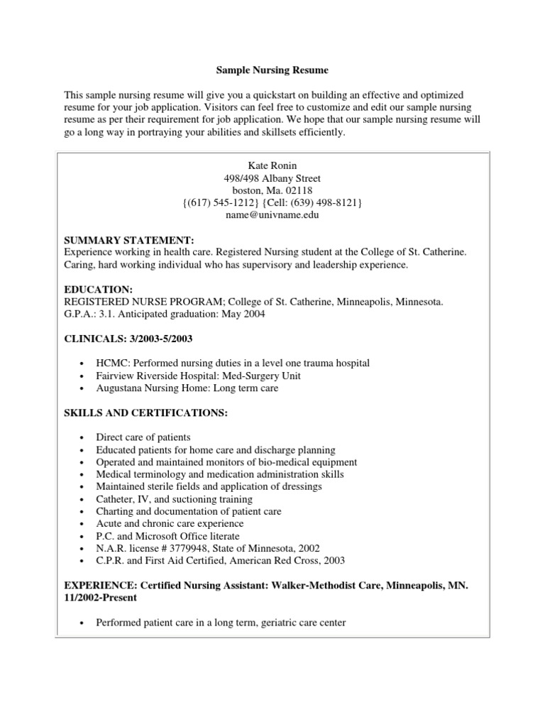 Clinic Nurse Resume Samples Qwikresume. Dedicated registered nurse with 30+ years experience in rehabilitation and long term care setting. Show the right icu accomplishments in the right format, and you'll turn heads like elizabeth bridges in. Are you working as a nurse in the medical industry and you think the time has come to change jobs at a different hospital or care facility? Writing a great registered nurse (rn) resume is an important step in your job search journey. A nursing resume is a document highlighting your nursing skills, formal education, and relevant experience. Trauma certified registered nurse with more than five years experience working in emergency care. To get hired, your critical care nurse resume has to assess at 100%. Get inspired using our trusted charge nurse, longterm care facility resume example. Icu resume job description and objectives. Nurse resume example ✓ complete guide ✓ create a perfect resume in 5 minutes using our resume examples & templates. Write a critical care nurse resume with tips and examples. The following resume samples and examples will help you write a nursing resume that best highlights your experience and qualifications. Progressive care certified nurse certification (pccn). Medical nurse resume sample inspires you with ideas and examples of what do you put in the objective, skills, responsibilities and duties. If you're already a good match for the job in terms of skills and experiences, these sections could end up being the deciding factor that gets you hired (and.