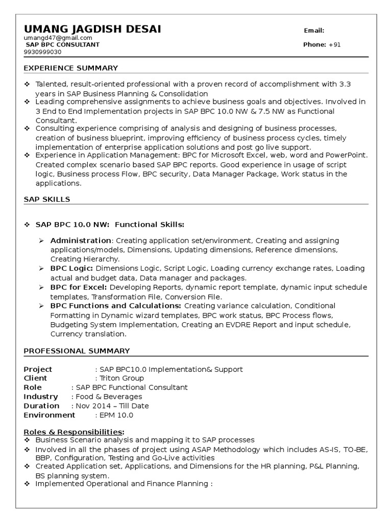Sap Consultant Resume Sample Mintresume. Posted in categories sap sample resumes. Abap/4 consultant sample resume for 3 year experience. Does your sap resume suck? Sap resume samples and examples of curated bullet points for your resume to help you get an interview. I have seen 100's if not thousands of resumes and most of them suck. Sap finapps applications development analyst resume examples & samples. Work closely with business and project delivery team to ensure appropriate business measures are defined. Here we give you the best professional sap resume sample to land more job interviews. Did you just search for a sample sap resume and then copied it? Here we have the best recommended professional sap resume sample. If you passed one of sap certifications before looking for a job, it is also a very good idea to mention this exam on your sap sd resume and include information about the score that you achieved. Sap abap sample resumes for fresher & experienced sap professionals download for free. Are you looking for an sap resume example? Just click edit resume and modify it with your. You don't have to start writing from scratch.